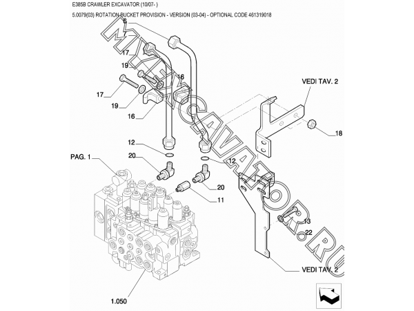 Гидросистема/ROTATION BUCKET PROVISION - VERSION (03-04) - OPTIONAL CODE 461319018 New Holland E385B