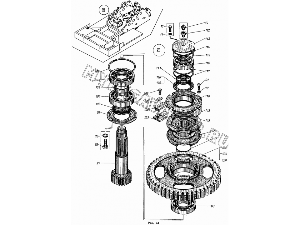 99. 652Б.770.00.2 Крышка нижняя 100 8752.1.2-120x150-1 Манжета 101 5721.3522 Подшипник 102 652Б.970.00.2 Втулка 103 8338.222 Подшипник 104 13.943.В200 Кольцо 105 652Б.975.03.000 Стопор 106 652Б.975.02.000 Планка 107 17-61-003 Шайба стопорная 108 7798.М16x40 Болт 109 652Б.470.05.002 Крышка 110 652Б.975.00.001 Крышка 111 8752.1.2-90x120-1 Манжета 112 652.041.00.68 Штуцер 113 652Б.041.00.63 Крышка 114 652Б.041.00.62 Прокладка 115 13943.В.160 Кольцо 116 8338.413 Подшипник 117 652Б.975.00.004 Прокладка 118 652Б.975.00.007 Корпус 119 505А.060.00.12 Полукольцо 120 652Б.975.01.000 Муфта кулачковая 121 13942.Б110 Кольцо 122 652Б.975.00.010 Шестерня 123 652.060.00.1 Шестерня 124 652Б.770.00.11 Шестерня