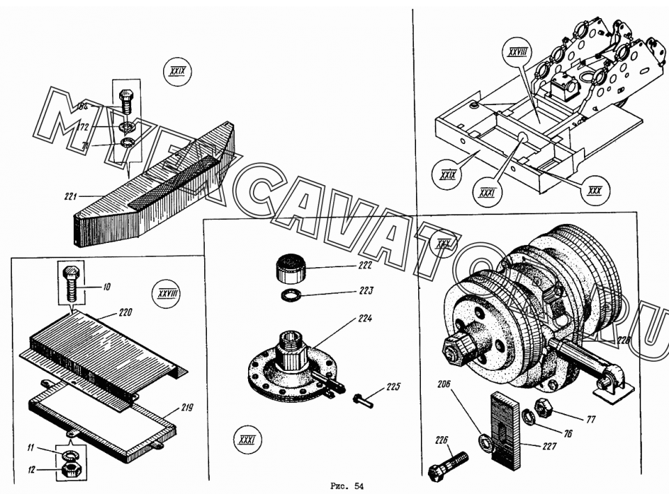 77. 5915.М12 Гайка 164 7798.М10x20 Болт 172 11371.10 Шайба 206 652.080.00.89 Шайба 219 652.268.01 Рамка 220 652.268.002 Крышка 221 ЭО-4112.20.08.00.000 Кожуx 222 652В.29.03.000 Фильтр 223 652Б.29.00.001 Прокладка 224 652Б.29.10.000 Насос диафрагменный 225 ЭО-4112.20.62.00.000 Труба 226 7798.М12x90 Болт 227 ЭО-4112.20.00.00.020 Накладка 228 ЭО-4112.20.10.00.000 Редуктор