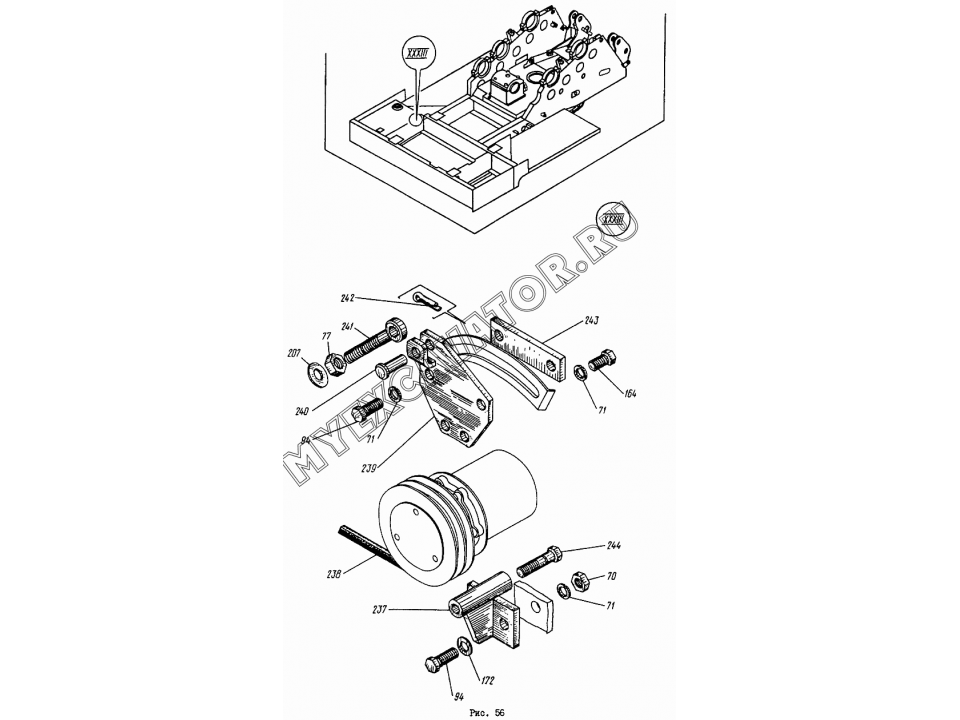 94. 7798.М10x30 Болт 164 7798.М10x20 Болт 172 11371.10 Шайба 207 НО.8301/С Краник спускной вентильный 237 ЭО-4112.20.36.00.000 Опора 238 1284.1А-1400 Ремень 239 ЭО-4112.20.37.00.000 Кронштейн 240 9650.6-10hx30 Ось 241 ЭО-4112.20.40.00.000 Тяга 242 397.3,2x20 Шплинт 243 ЭО-4112.20.00.00.022 Планка 244 7798.М10x100 Болт