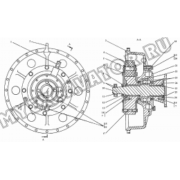 311512-90-102СП Водило 1. 313512-90-23 Шестерня 2. 313512-90-24 Водило 3. 313512-90-11 Ось 4. 2001-12-111СП Штифт 5. 2501-12-160 Кольцо упорное 6. 313512-90-10 Сателлит 7. 6-252808Д Подшипник ГОСТ8338-75 8. 305 Подшипник ГОСТ8338-75 9. 700-58-2103 Кольцо С65 ГОСТ13941-86 10. 313512-90-19 Втулка..